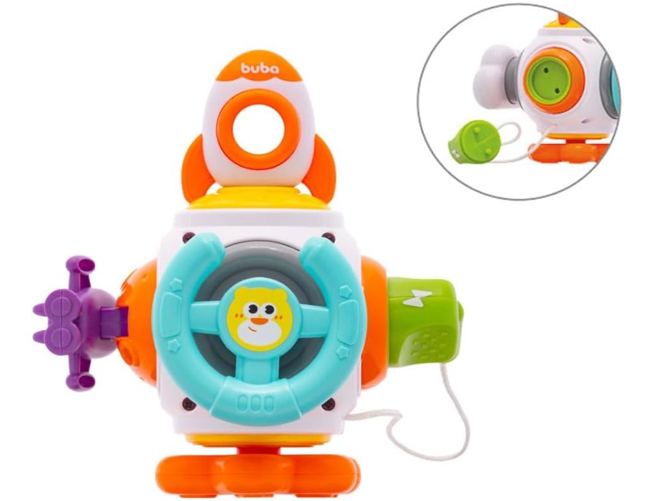 Um universo de possibilidades interativas está a bordo do Foguetinho da Buba. Desenvolvido para estimular o bebê com movimentos de apertar, buzinar, puxar, empurrar, plugar e girar. Diversão não vai faltar com essa supernave