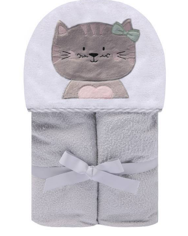 Toalha De Banho Felp. Papi Friends Forrada C/Capuz Bord. - Gatinha Miau